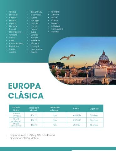 Ilimitado 4GLTE N/A 45 USD 30 días